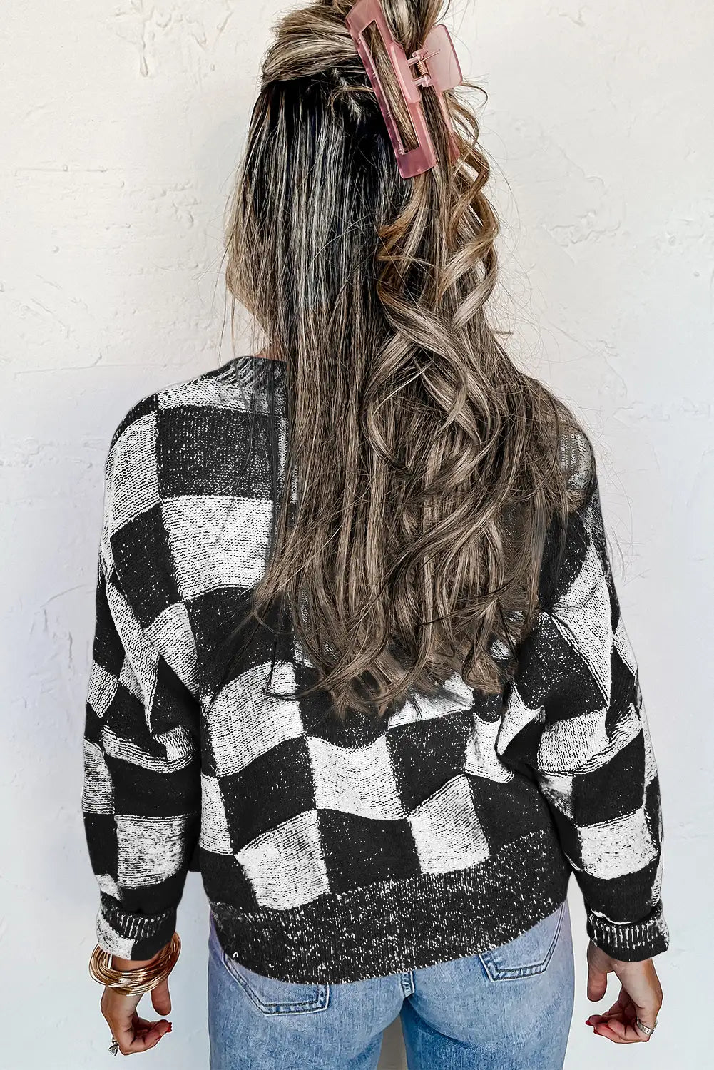 Veredeln Sie Ihren Stil mit unserem schicken schwarzen, karierten Cardigan mit überschnittenen Schultern und geknöpftem V-Ausschnitt. Bleiben Sie im Trend mit diesem klassischen, karierten Cardigan. Das Design mit überschnittenen Schultern sorgt für eine entspannte Passform. Der stylische Knopfverschluss vorne bietet Vielseitigkeit, während der schmeichelnde V-Ausschnitt für einen Hauch von Eleganz sorgt. Dieser Cardigan ist perfekt für den Alltag im Herbst. Hergestellt aus 50 % Viskose, 28 % Polyester und 22 % Polyamid. Er ist auf Komfort und Stil ausgelegt. Aktualisieren Sie Ihre Garderobe mit diesem Cardigan im Southern Belle-Stil und erleben Sie die perfekte Mischung aus Mode und Flair.