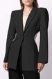 Der rückenfreie Blazer mit Cut-Outs ist ein auffälliges und modernes Kleidungsstück. Das einzigartige Cut-Out-Design auf der Rückseite verleiht Ihrem Outfit einen Hauch von Raffinesse und Eleganz. Der Blazer hat vorne eine klassische, maßgeschneiderte Silhouette mit strukturiertem Kragen und Revers. Er ist eine vielseitige und stilvolle Option für formelle und legere Anlässe. Das rückenfreie Detail verleiht ihm ein gewagtes und sexy Element, mit dem Sie Ihren persönlichen Stil und Ihr Selbstbewusstsein zur Schau stellen können. Dieser Blazer aus hochwertigen Materialien ist bequem und langlebig und setzt gleichzeitig ein modisches Statement. Ob mit Hose oder Rock – der rückenfreie Blazer mit Cut-Outs ist ein echter Hingucker und hinterlässt einen bleibenden Eindruck.