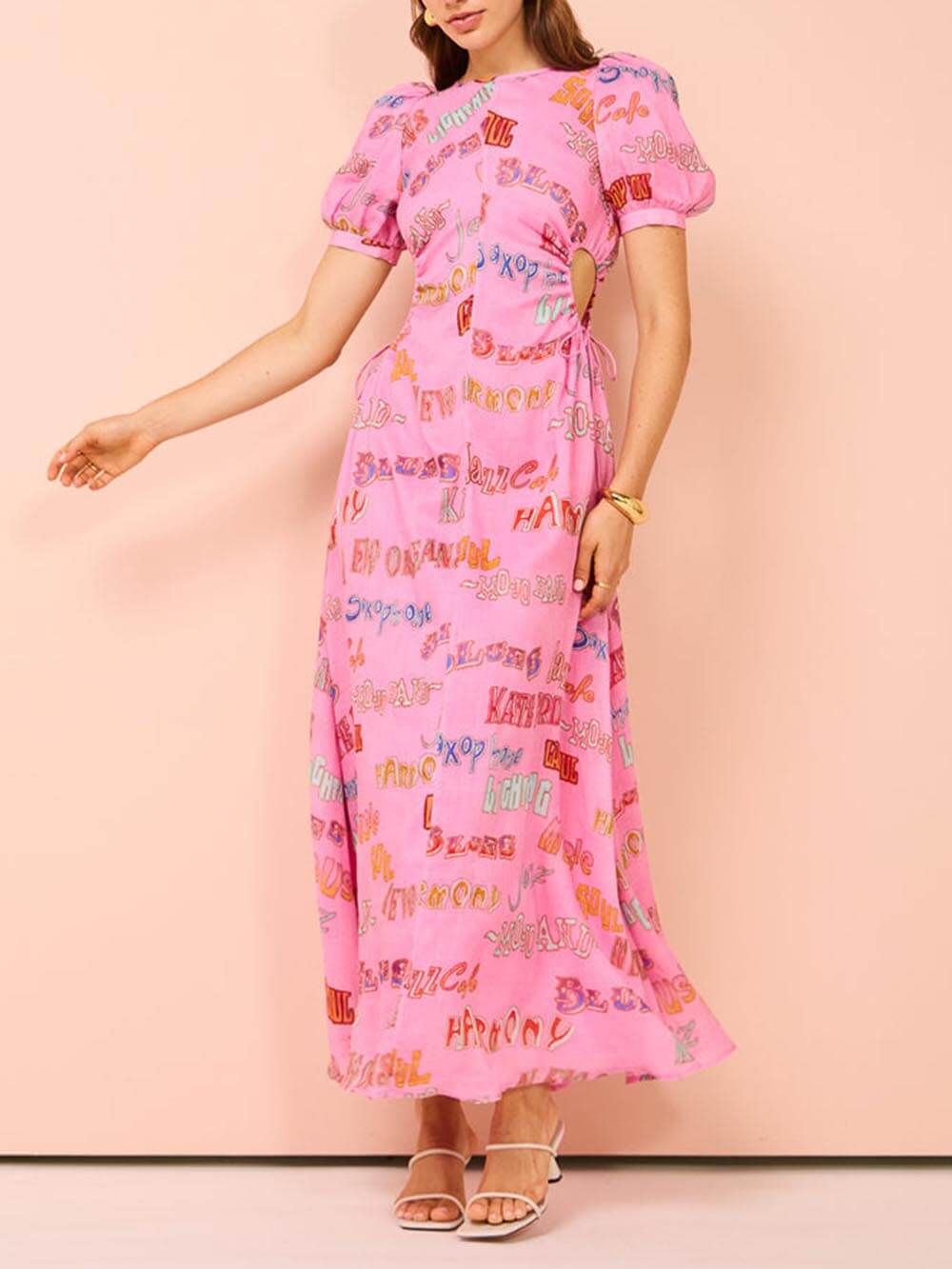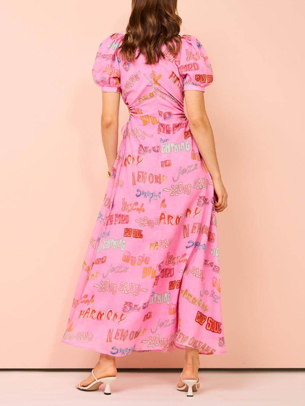 Mühelos schick. Unser bedrucktes Midikleid mit Kordelzug in der Taille, Puffärmeln und ist perfekt für jeden Anlass.