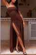 Wir präsentieren das trägerlose Maxikleid. Hier trifft Eleganz auf Anmut. Mit trägerlosem Ausschnitt, gefüttertem Oberteil und halbtransparentem Chiffonrock verkörpert es zeitlose Eleganz für unvergessliche Momente.
