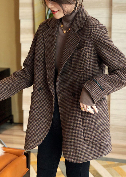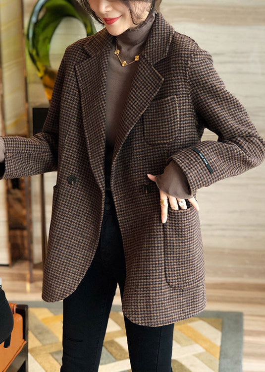 Elegante Plaid Button Taschen Patchwork Baumwolle Mäntel Herbst