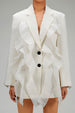 Verpassen Sie Ihrem Look mit den eleganten Rüschenblazern von Rosedress Boutique einen modernen Touch. Mit Reverskragen, Knopfleiste und langen Ärmeln ist dieser Blazer aus Baumwollmischtwill perfekt für den Business-Look und den Freizeit-Look. Mit luftigen, plissierten Volants an der Vorderseite und den Ärmeln versprüht diese stylische Einreiherjacke zeitlosen Charme. Ideal für trendbewusste Frauen auf der Suche nach einem vielseitigen Outfit. Kombinieren Sie ihn mit einer eleganten Hose für einen eleganten Büro-Look oder tragen Sie ihn über einem eleganten Slipdress für abendliche Verabredungen; dieser lange Blazer lässt sich mühelos vom Tag in die Nacht tragen.