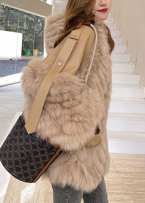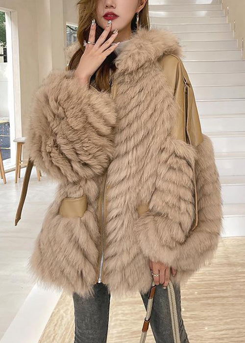 Französisch Khaki Kapuzentaschen Patchwork Leder und Pelz Mäntel Winter