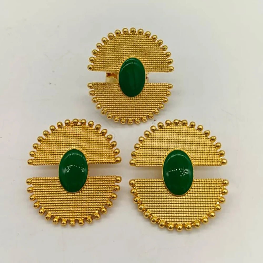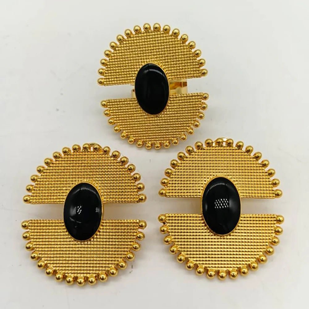 Entfesseln Sie zeitlose Eleganz mit unserem vergoldeten geometrischen Ohrring- und Ringset. Sorgfältig gefertigt für modebewusste Frauen. Dieses Set ist nicht nur Schmuck; es ist ein Statement für Stil und Raffinesse.