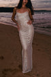 Mit seinem U-Ausschnitt und den Netzträgern, die sich elegant bis zum Rücken erstrecken, strahlt dieses Kleid Eleganz und Glamour aus. Die Knöpfe auf der Rückseite und der Schlüssellochverschluss verleihen ihm einen dezenten Charme. Der offene Rücken unterstreicht seinen modernen Look zusätzlich und macht es ideal für formelle Anlässe oder besondere Anlässe. Das Kleid ist mit einem geklebten Paillettennetz gefüttert, das für Komfort und Schutz sorgt. So wird jeder Moment unter dem Mitternachtshimmel unvergesslich.