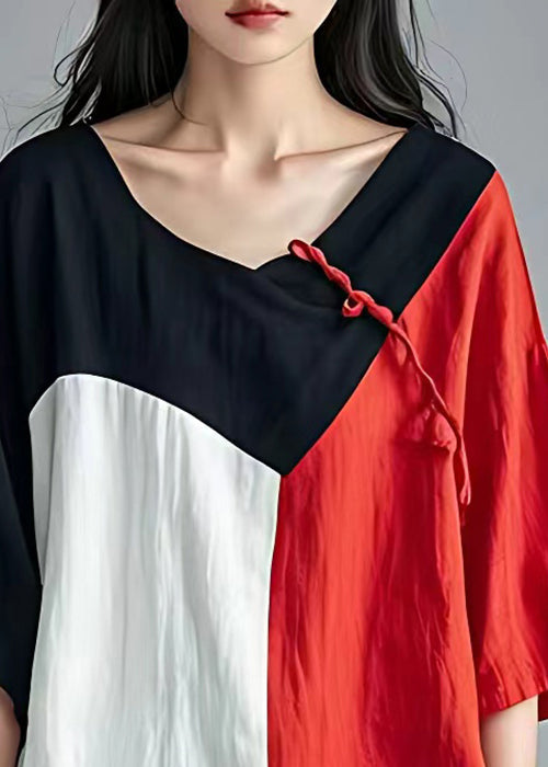 Neu Schwarzes asymmetrisches Patchwork-Baumwolltop mit Armbandärmeln