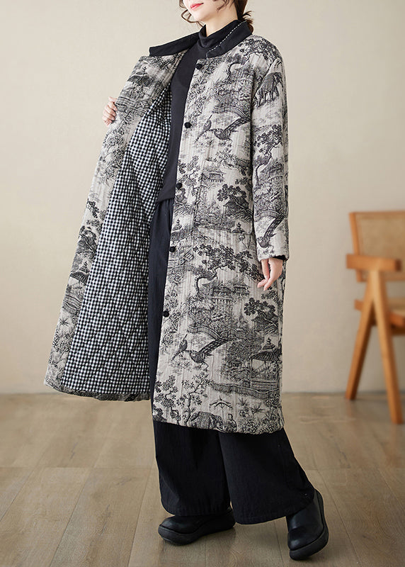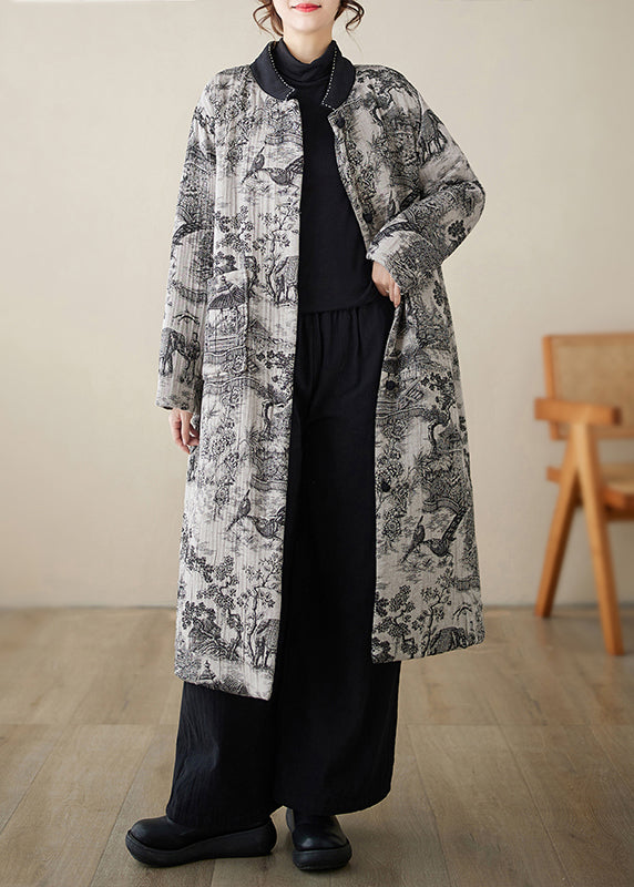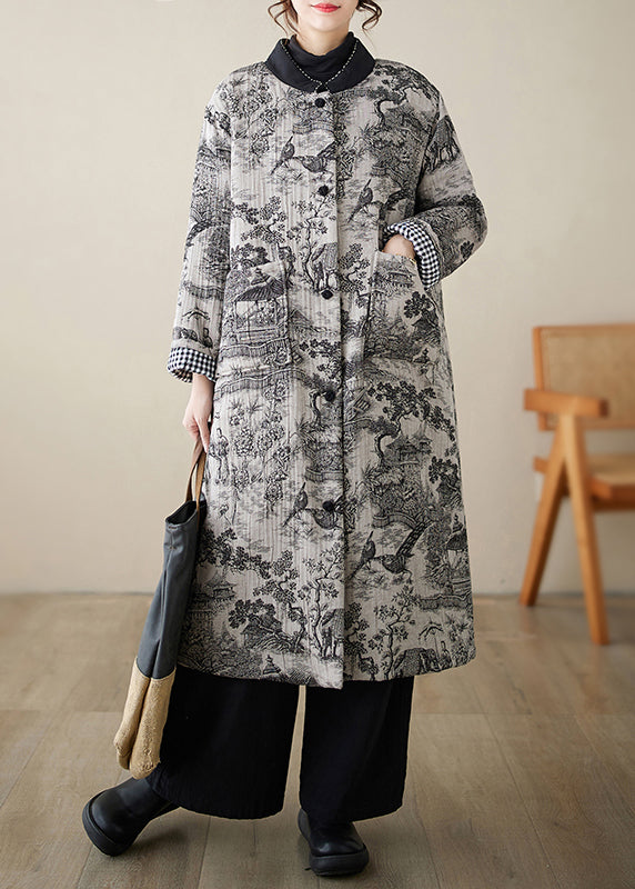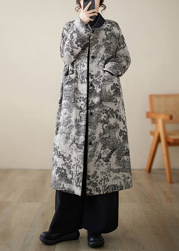 Neu Chinesischen Stil Gedruckt Taschen Baumwolle Füllung Mantel