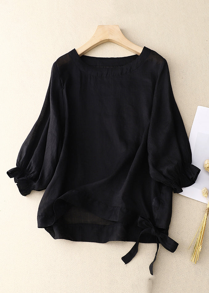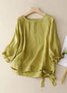 Neu Grün O Neck Lace Up Baumwolle Hemd Armband Ärmel