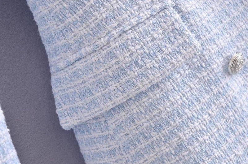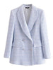 NOELLA TWEED BLAZER ist ein pastell- und metallischer Tweed-Strick, der diesem langen Blazer eine reiche strukturelle Dimension verleiht, der für eine fließendere, moderne Passform ungefüttert ist.