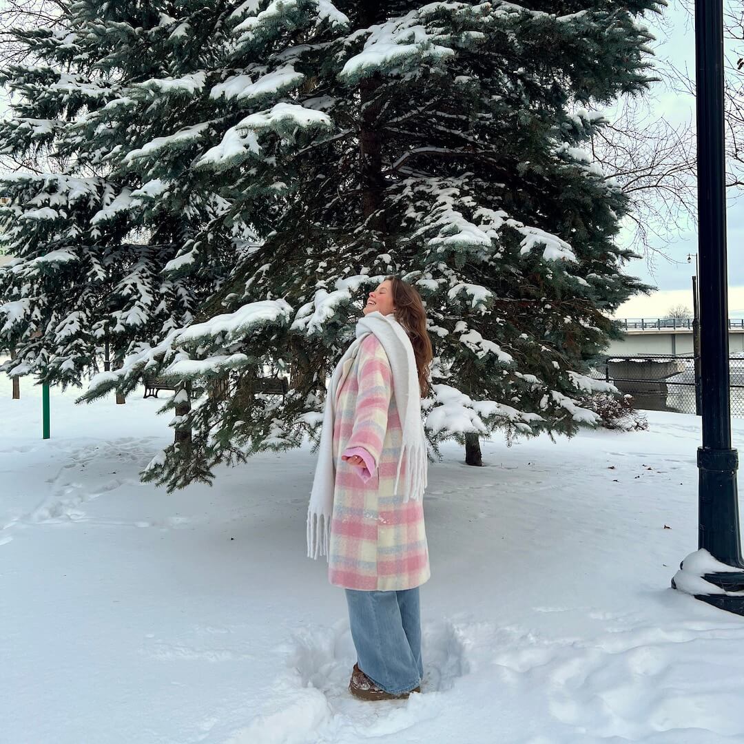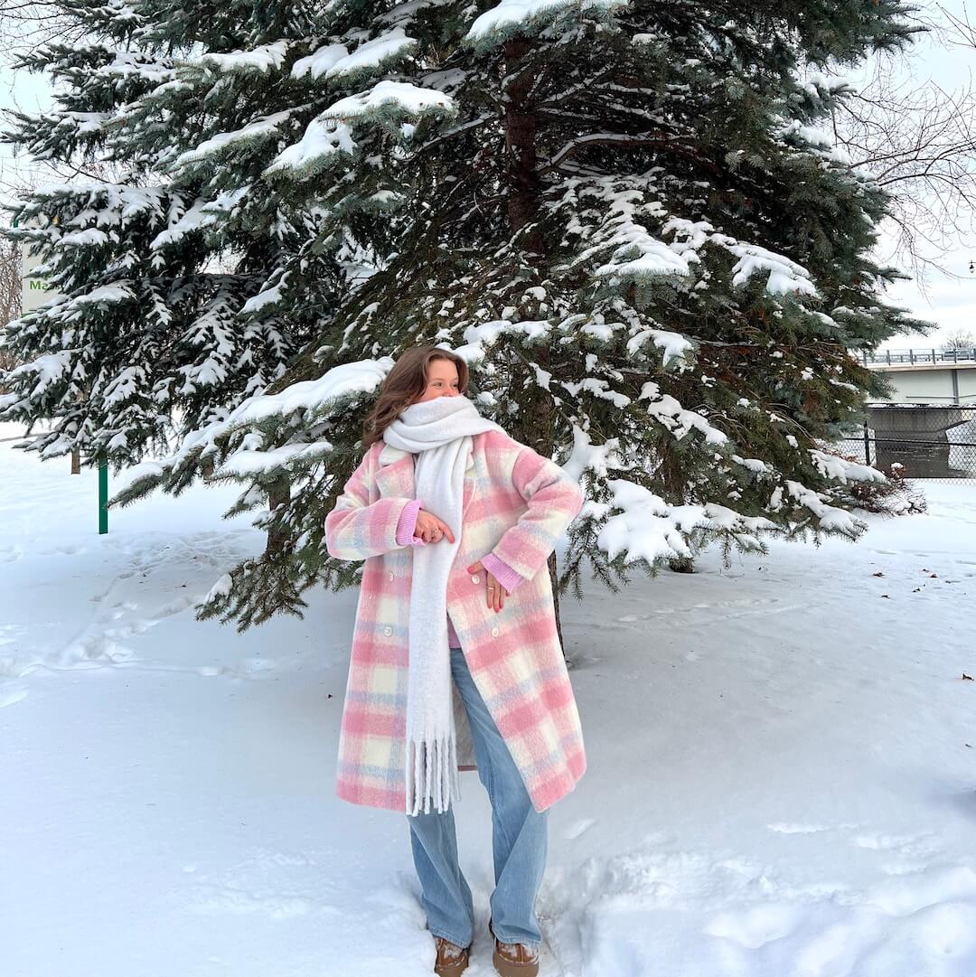 Ob Sie sich für den einzelnen Mantel oder das komplette Nordic Peace-Ensemble entscheiden, Sie betreten eine Welt winterlicher Eleganz. Setzen Sie ein Statement mit dem übergroßen rosa Mantel. Ein Inbegriff von Komfort und Stil, maßgeschneidert für die moderne Frau.