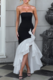 Betreten Sie Ihre Soft-Girl-Ära im Maxikleid. Hergestellt aus unserem luxuriösen, nicht dehnbaren Mischgewebe, das sich dem Körper anschmiegt und für eine traumhafte Silhouette sorgt. Dieses trägerlose Design wird durch einen voluminösen, gerüschten High-Low-Rock abgerundet, der super hübsch und verspielt ist.