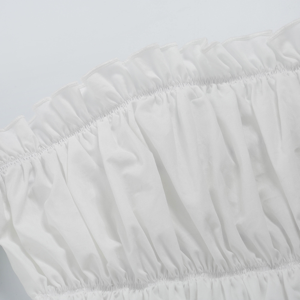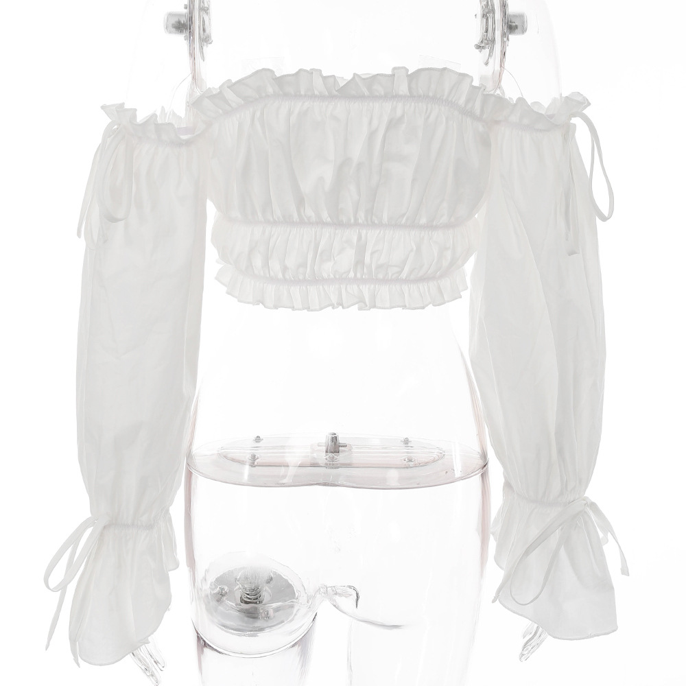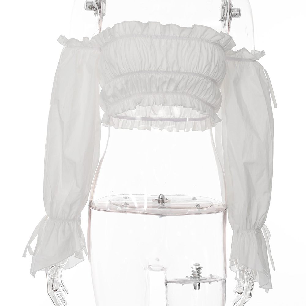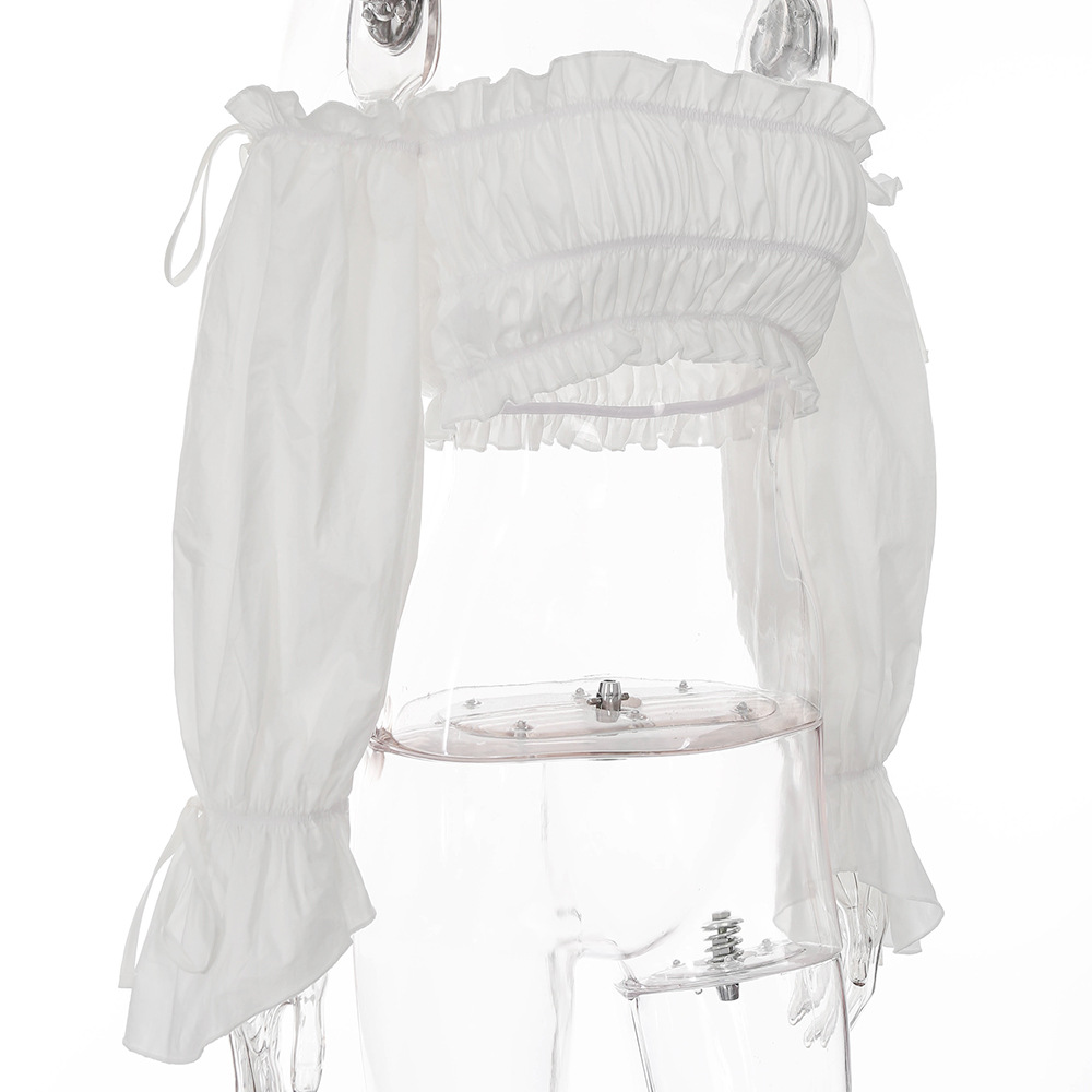 Sexy Rüschen Off-Shoulder Rüschen Bandage Camis Frauen Schlanke Lange Laterne Ärmel Tank Tops Weiß Backless Rüschen Crop Tops