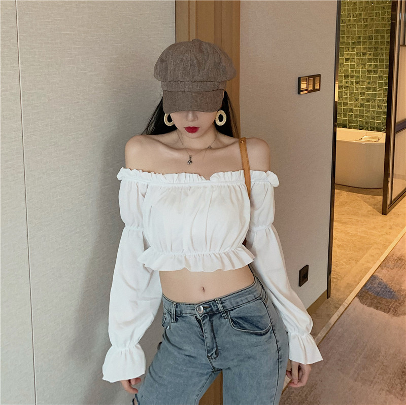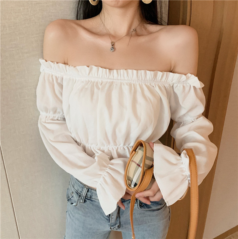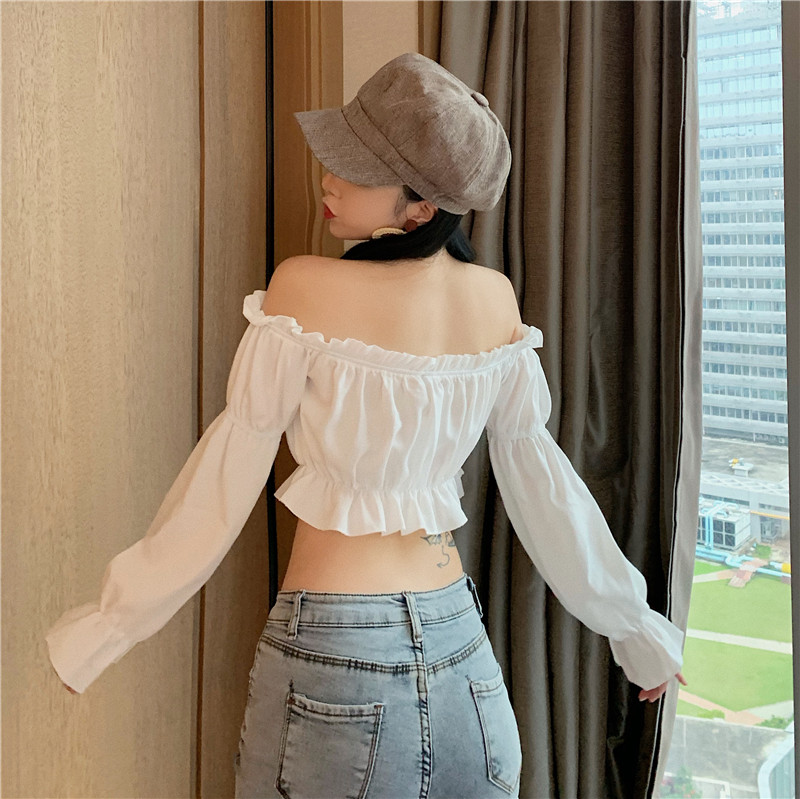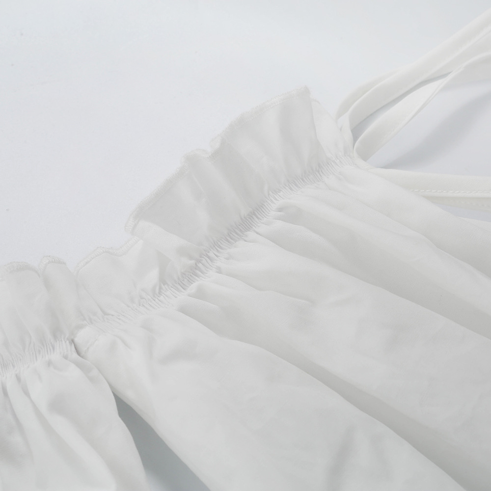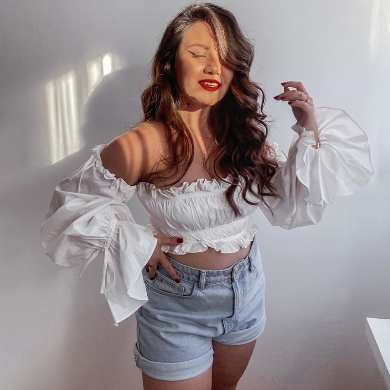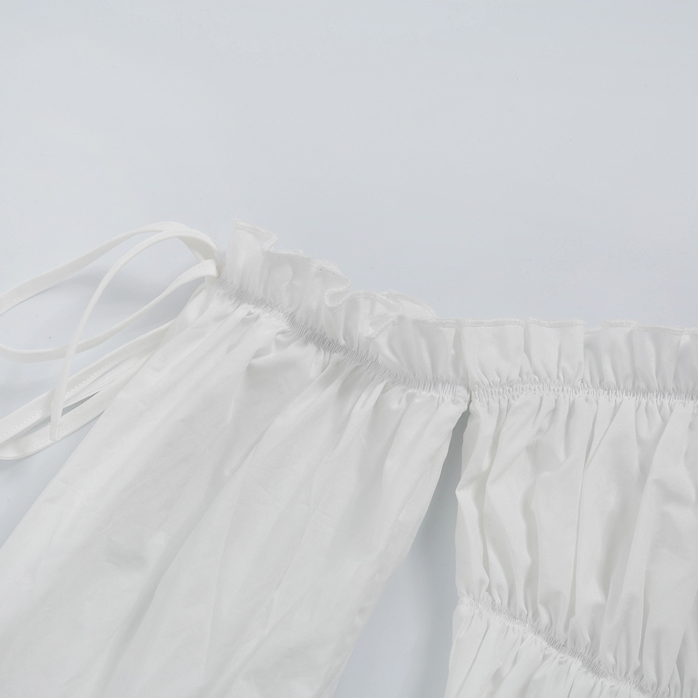 Sexy Rüschen Off-Shoulder Rüschen Bandage Camis Frauen Schlanke Lange Laterne Ärmel Tank Tops Weiß Backless Rüschen Crop Tops
