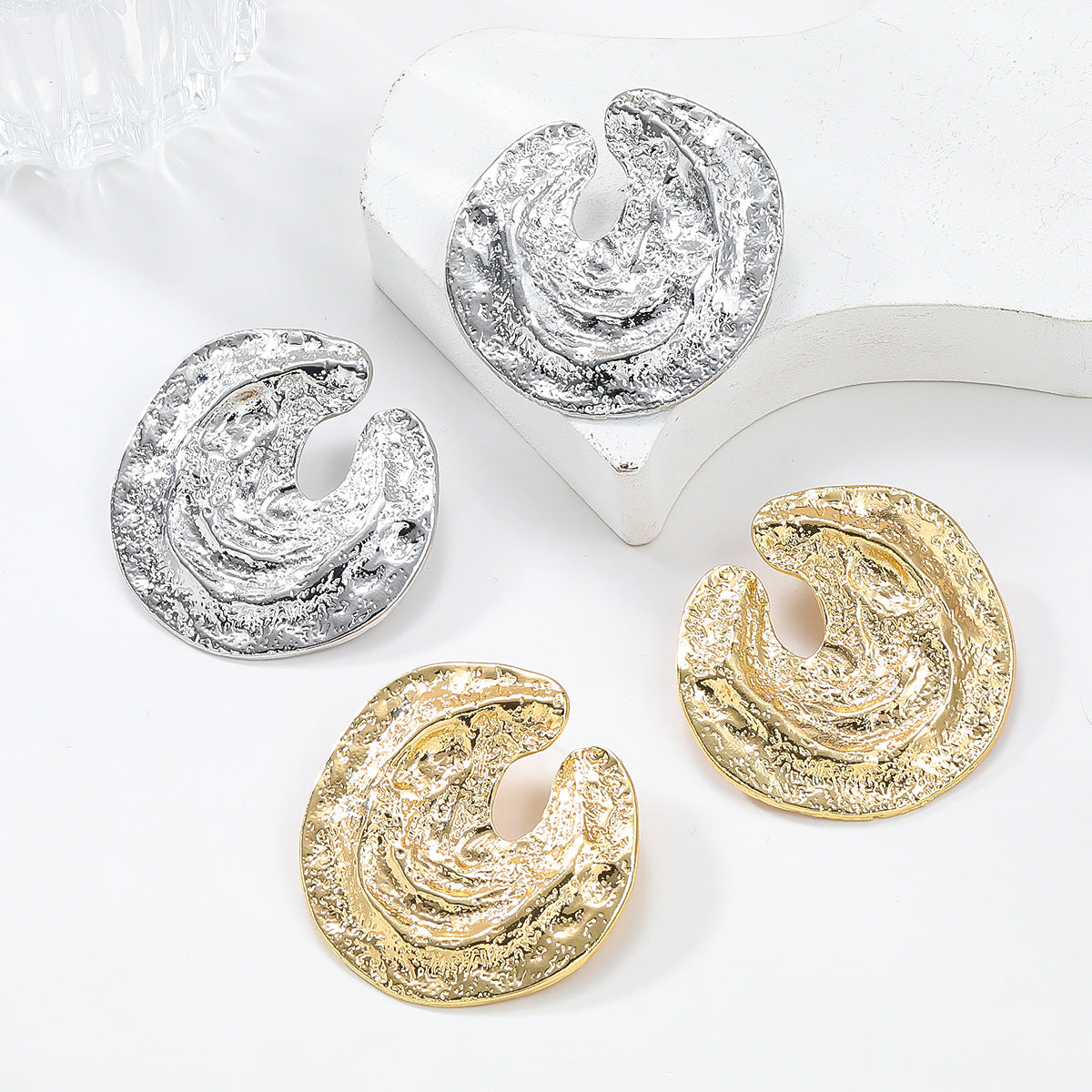 Schlichte und stilvolle U-förmige Ohrstecker mit unregelmäßigen Oberflächen. Unregelmäßige Formen verleihen Ihnen ein modisches Gespür. Die Metalloberfläche verleiht Ihnen ein Gefühl von Klasse. Die übertriebene Größe wird mit einer schlichten Form kombiniert. Mit einem Gespür für Mode und Alltagsstil. Sie passen perfekt zu jedem Outfit. Ob Alltagskleidung, Berufskleidung oder Abendgarderobe. Sie können zu Ihrem auffälligsten Schmuckstück werden. Es lohnt sich, sie Ihrer Sammlung hinzuzufügen!