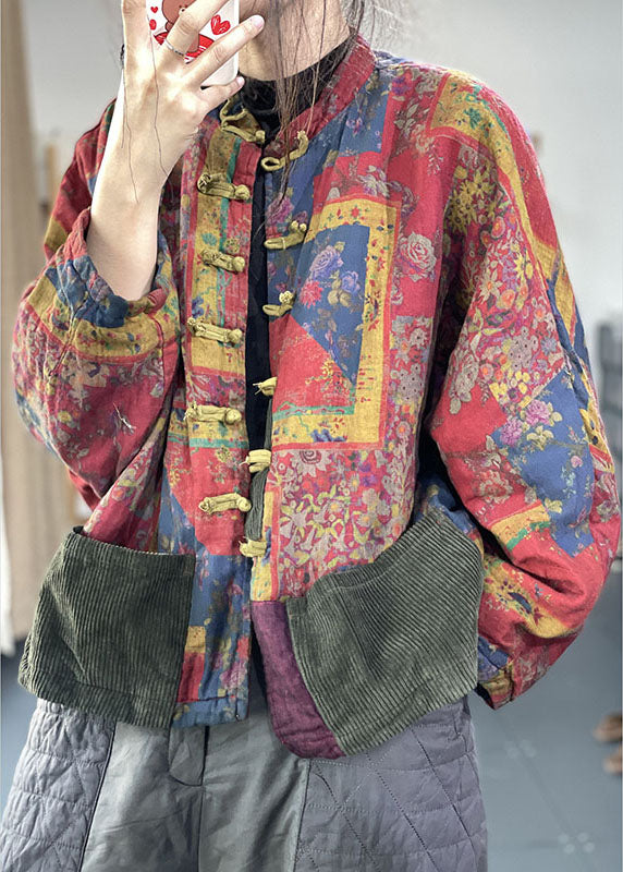 Vintage Rote Taschen Knopfdruck Herbst Langarm Mantel
