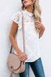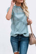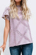 Crea un look inolvidable con el top de volantes con superposición de encaje Not So Secret. ¡Un look atemporal! Un escote ligeramente alto y redondeado da paso a un escote y hombros de encaje floral. El fluido corpiño de tejido tiene una tapeta de botones de nácar en la espalda.