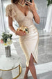 El hermoso encaje y el forro en la parte superior aportan sutileza, mientras que la parte inferior está confeccionada en un tejido flexible y elegante con un brillo refinado, garantizando comodidad y un estilo único. El vestido de doble manga añade un toque de romanticismo y elegancia. Se ajusta a la perfección. Estiliza tu figura y te hace sentir especial en bodas, bautizos, comuniones y otros momentos importantes. Su confección precisa te garantiza brillar en cada celebración. Dale un toque de magia a tu armario con este impresionante vestido.