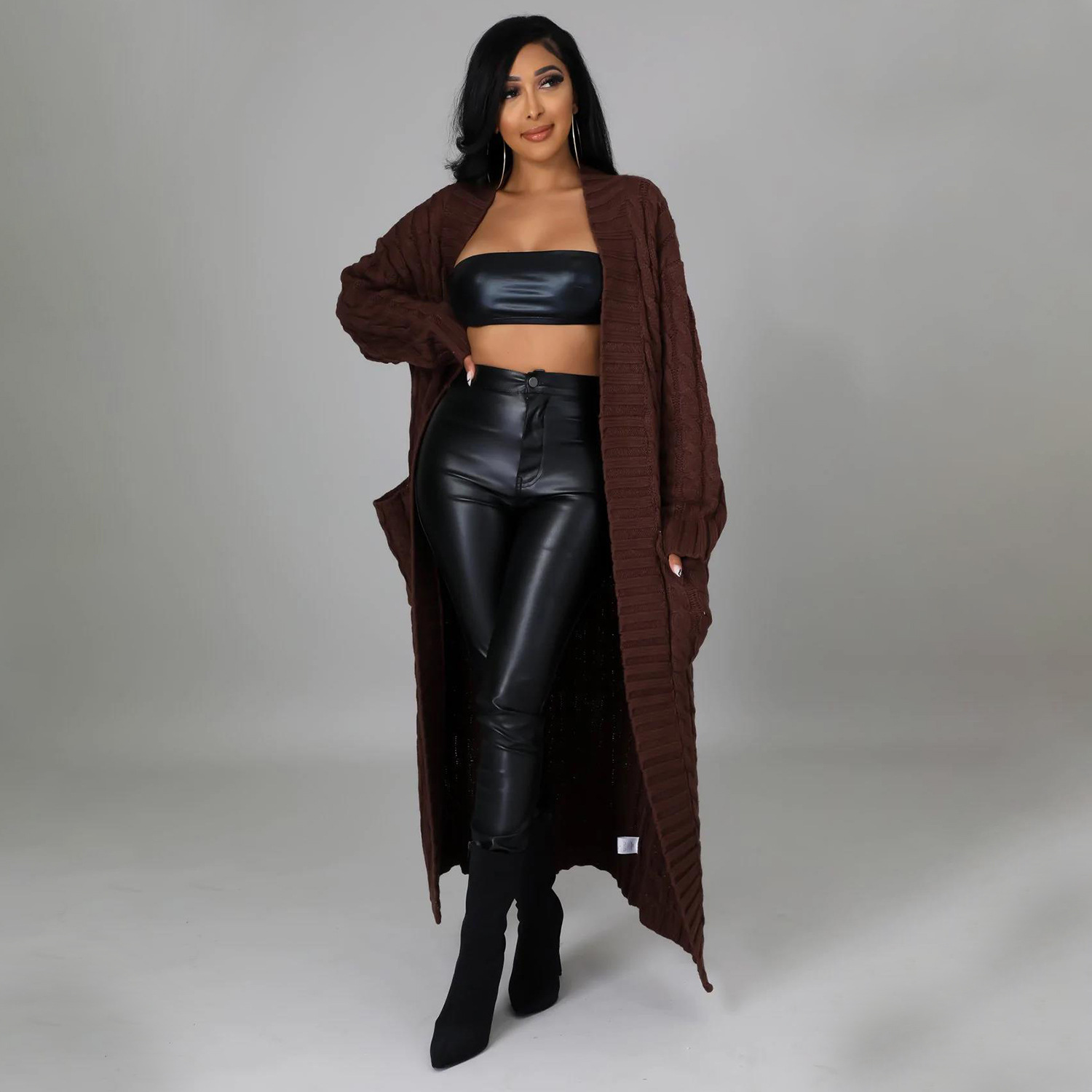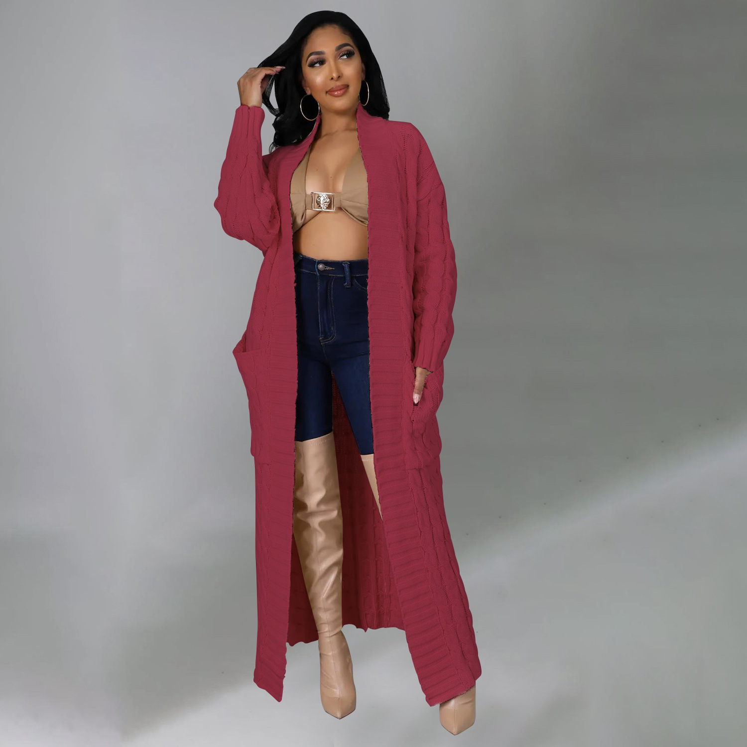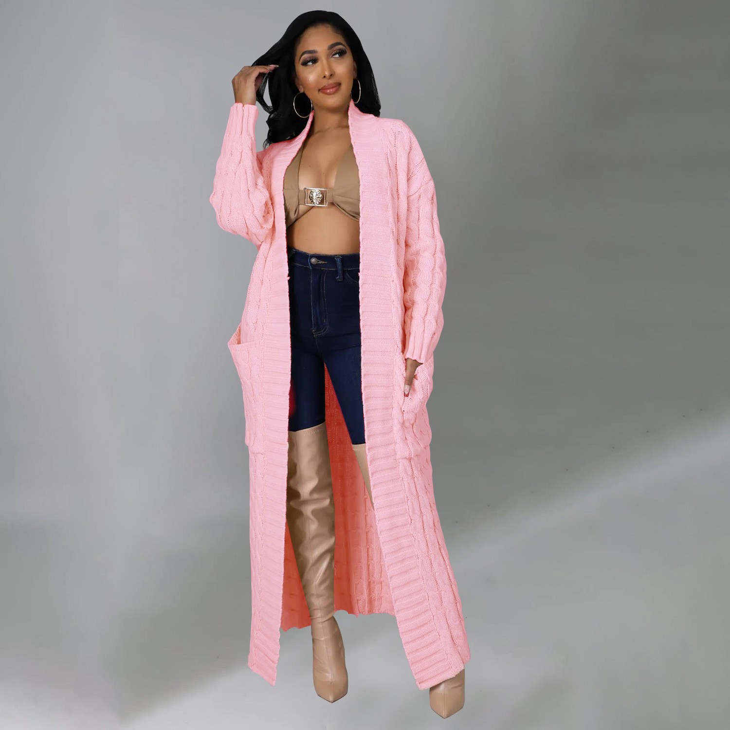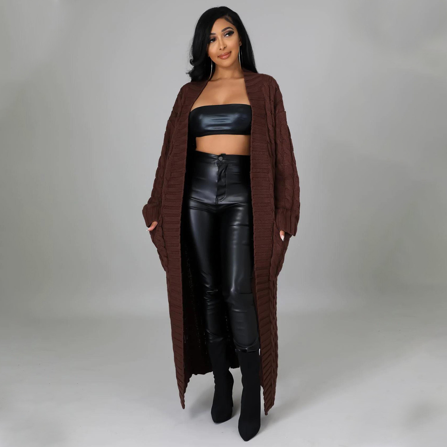 Este cárdigan informal presenta un tejido de jersey liso y un corte regular. El largo de la parte superior es más largo y el diseño incluye mangas largas. Está confeccionado con una mezcla de poliéster y diseñado para otoño e invierno. No incluye el tipo de cierre.