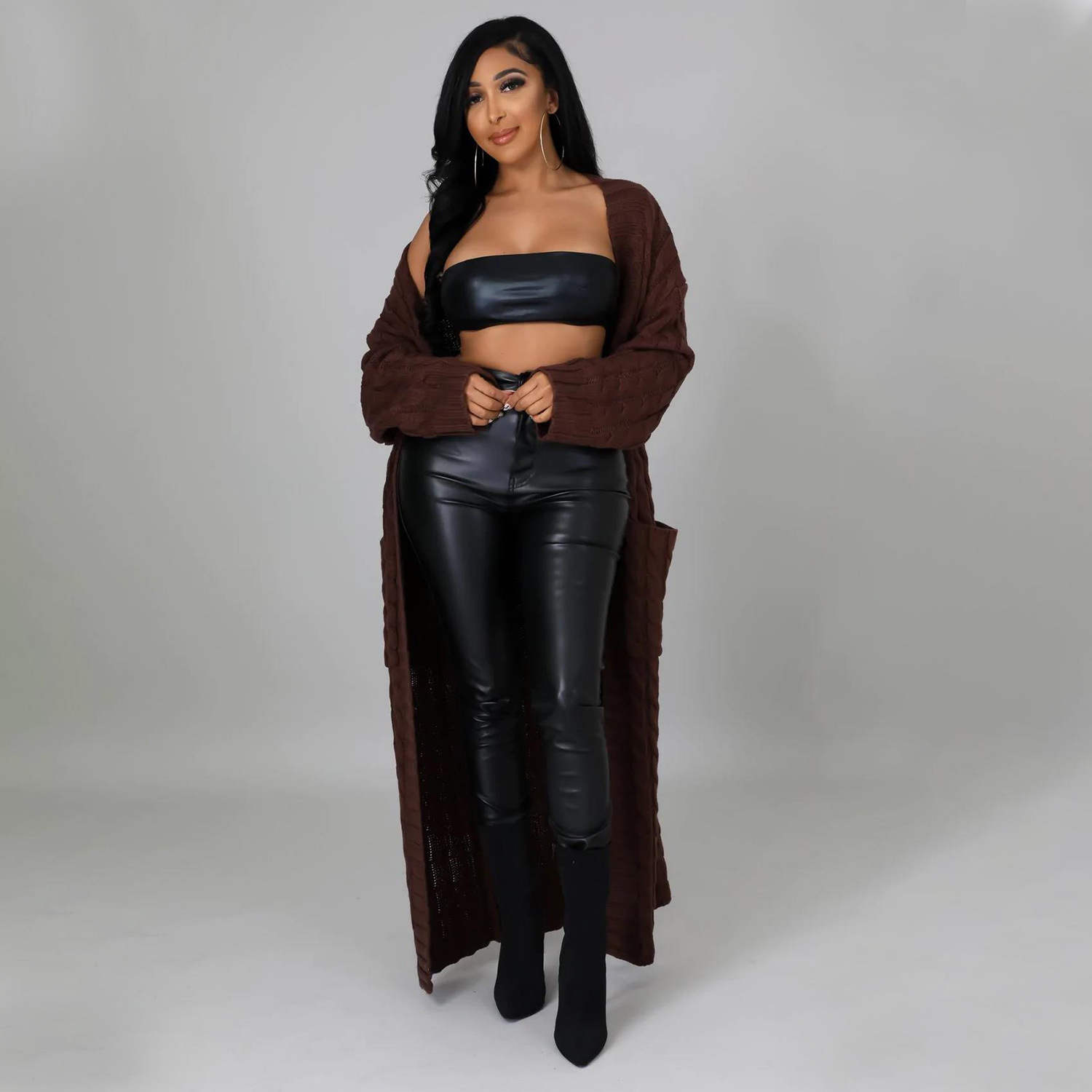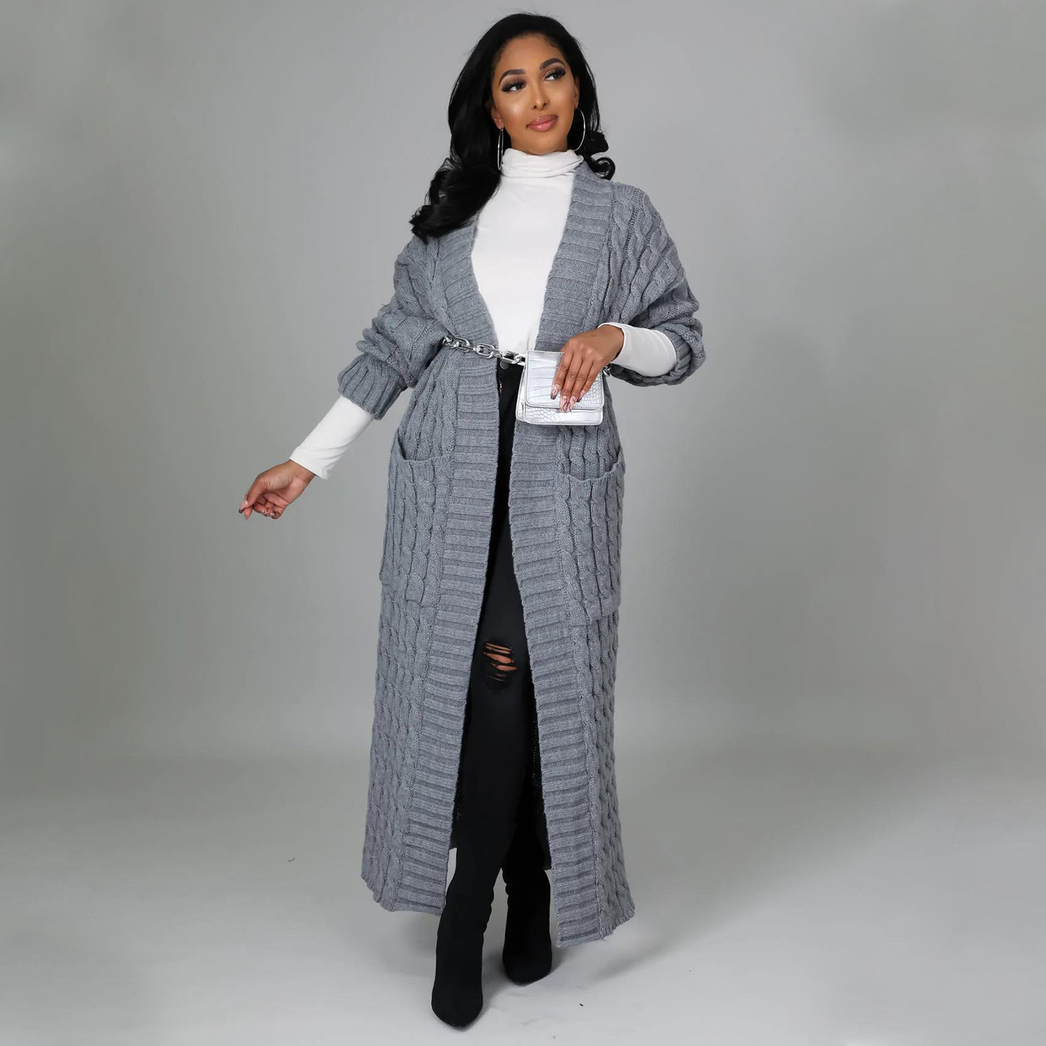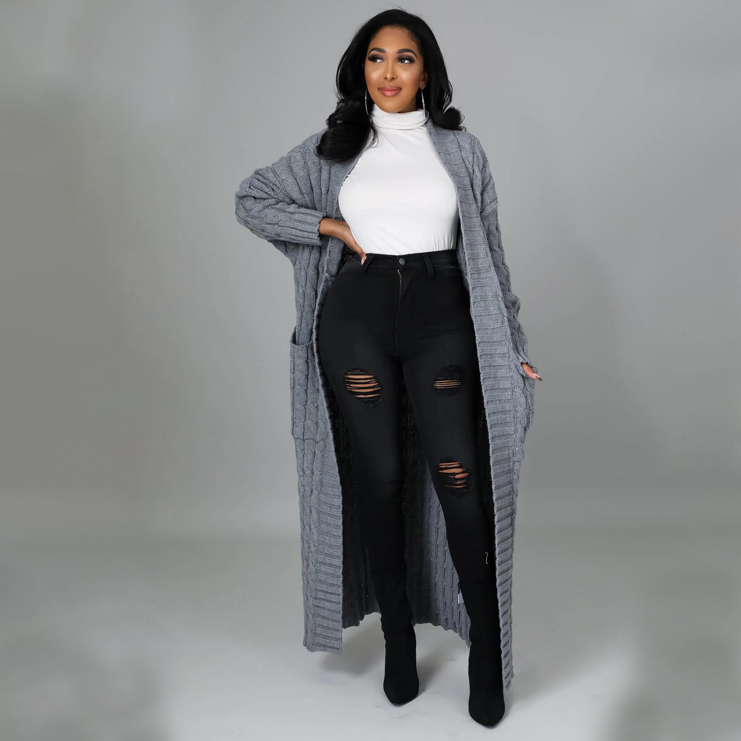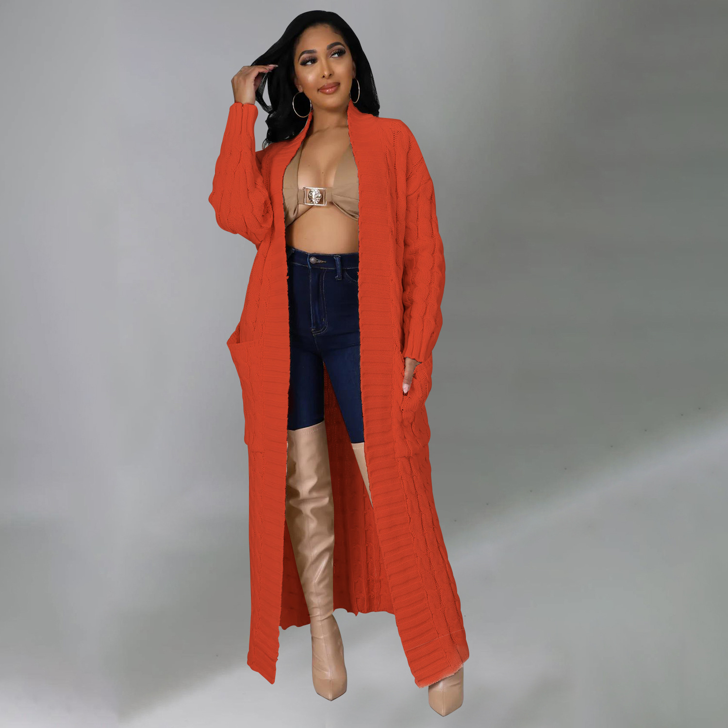 Este cárdigan informal presenta un tejido de jersey liso y un corte regular. El largo de la parte superior es más largo y el diseño incluye mangas largas. Está confeccionado con una mezcla de poliéster y diseñado para otoño e invierno. No incluye el tipo de cierre.