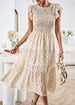 Este vestido midi plisado elástico con mangas de loto y cuello redondo floral de Silkblossom es muy informal. Su bonito estampado floral lo hace perfecto para vacaciones y para el día a día. La parte superior tiene pliegues elásticos que se ajustan a la perfección, sin apretarte, y realzan tus curvas. Casual y cómodo. Su corte sencillo se combina con el estampado floral, lo que le da un aspecto relajado. Las mangas con volantes son frescas y fluidas, y realzan la línea de los hombros. El dobladillo holgado no limita tu movimiento y es muy cómodo. ¡Úsalo para un día agradable en la playa o en la ciudad!
