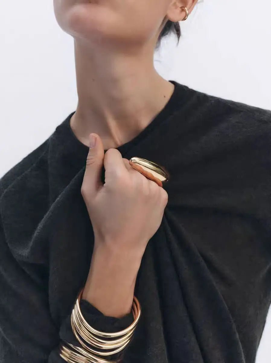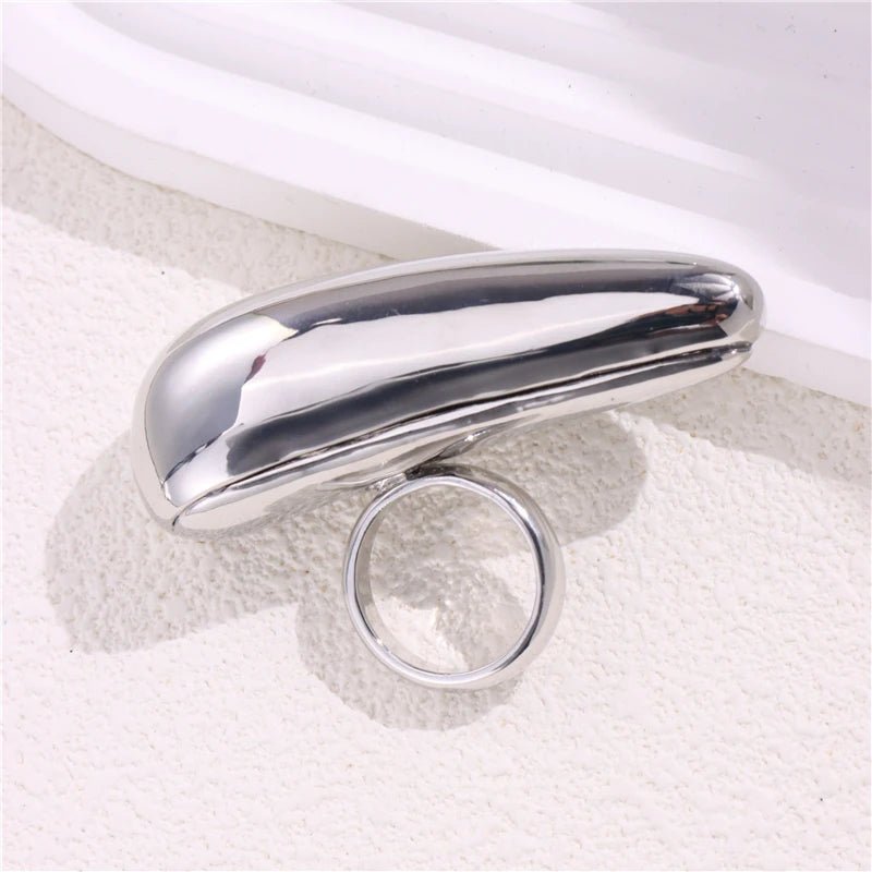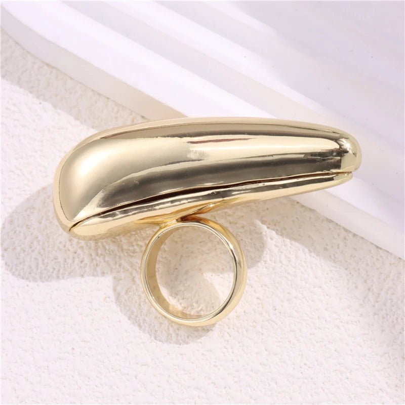 Destaca con nuestro Anillo Geométrico Exagerado de Gota de Agua en Oro y Plata. Una pieza impactante diseñada para la mujer vanguardista. Este anillo, tendencia 2024, combina lujo con una estética punk audaz, garantizando que atraigas todas las miradas dondequiera que vayas.