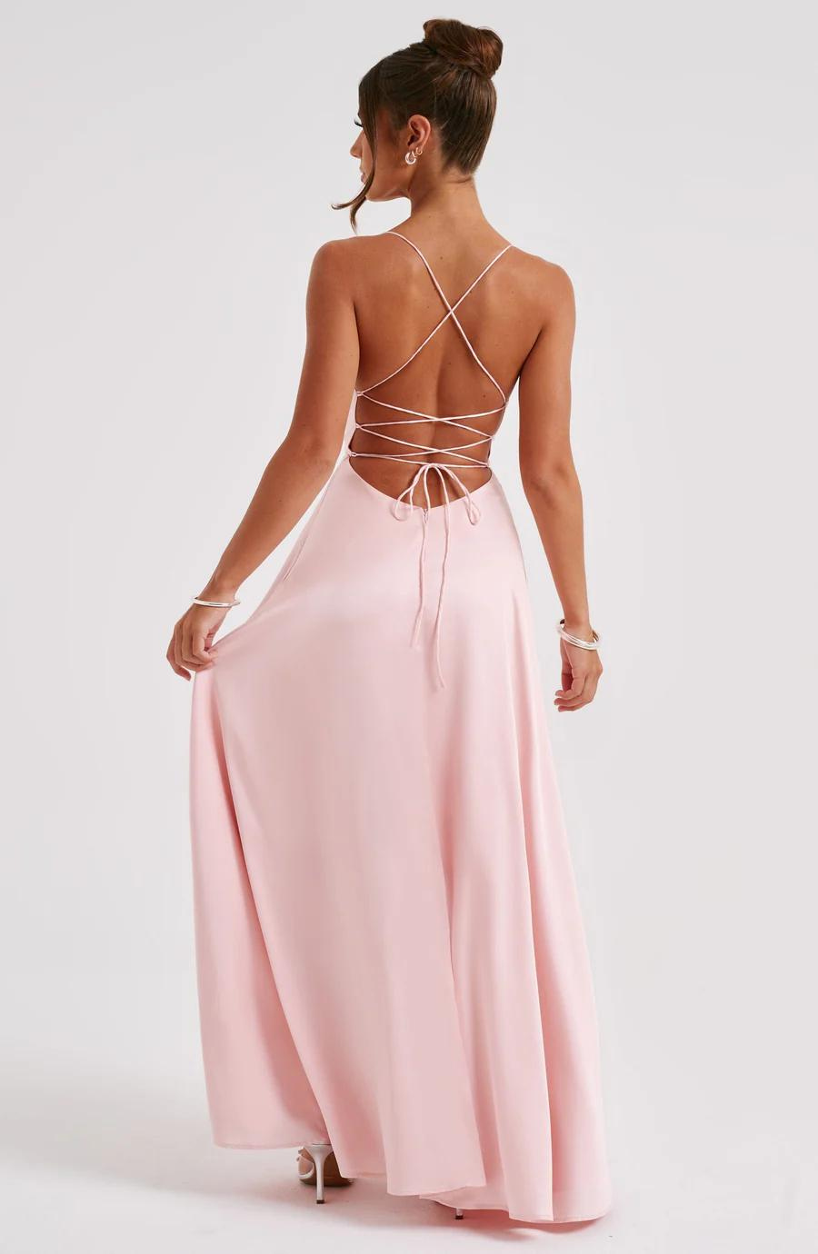 Perfecto para bodas, galas o cualquier evento formal, el vestido Lagoon combina minimalismo con lujo, asegurándote una entrada inolvidable.