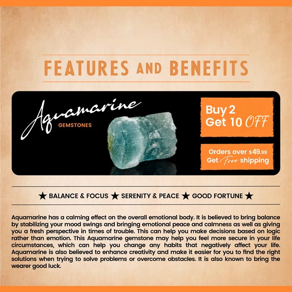 Aquamarine has a calming effect on the overall emotional body. It is believed to bring balance by stabilizing your mood swings and bringing emotional peace and calmness as well as giving you a fresh perspective in times of trouble. This can help you make decisions based on logic rather than emotion. This Aquamarine gemstone may help you feel more secure in your life circumstances. which can help you change any habits that negatively affect your life. Aquamarine is also believed to enhance creativity and make it easier for you to find the right solutions when trying to solve problems or overcome obstacles. It is also known to bring the wearer good luck.
