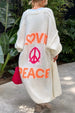 ¡Envuélvete en amor y paz con nuestro cárdigan suéter! Con un frente abierto y un hermoso estampado de amor y paz, este cárdigan largo está disponible en 5 increíbles colores. Siéntete cómoda y con estilo mientras transmites positividad con cada paso con esta prenda versátil y llamativa.