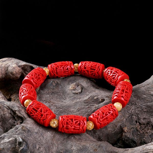 In Buddhist culture. cinnabar is often made into prayer beads and rosary beads. It is used when chanting Buddhist scriptures. It can calm people's minds. calm their minds. concentrate their minds. and improve their wisdom. It is an essential mascot for those who worship Buddha.