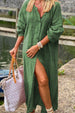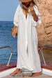 Make a statement in this stunning 3/4 Sleeves Button Down Cotton Linen Oversized Maxi Shirt Dress. Expertly crafted with a cotton linen blend. this dress offers elegance and comfort for an effortless. timeless look.