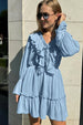 The Amelia Breeze Ruffle Long Sleeve Mini Dress captures the essence of effortless elegance. With its flowing ruffles cascading down the neckline and delicate flared sleeves. this dress embodies a romantic and carefree spirit. The lightweight fabric and relaxed fit make it perfect for a sunny day out or a casual evening gathering. Pair it with strappy sandals and a wide-brimmed hat for a chic boho look. or dress it up with heels and statement jewelry for a more refined style.