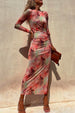 Make a statement in this Chicest Long Sleeve Ruched Side Slit Tie Dye Maxi Dress! Featuring long sleeves. ruched side and a tie-dye finish. this dress makes a stunning visual impact and will ensure you stand out in any crowd. Add this show-stopping piece to your wardrobe for an effortless everyday style.