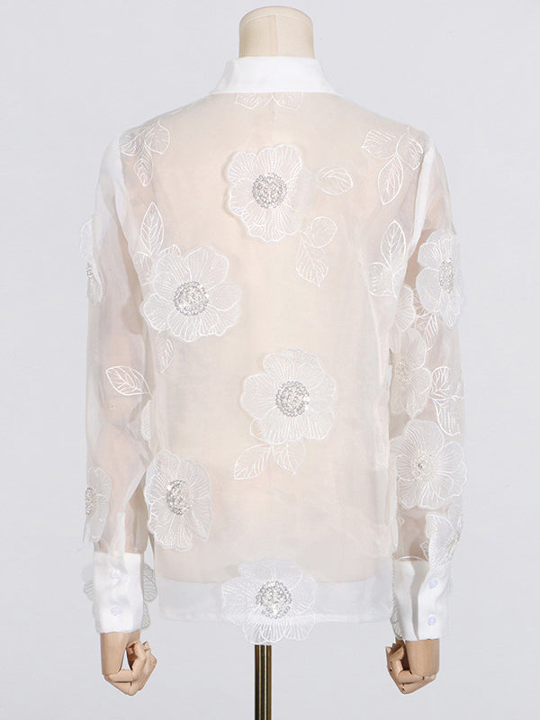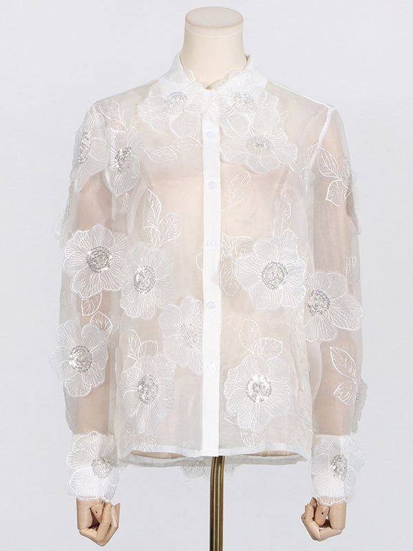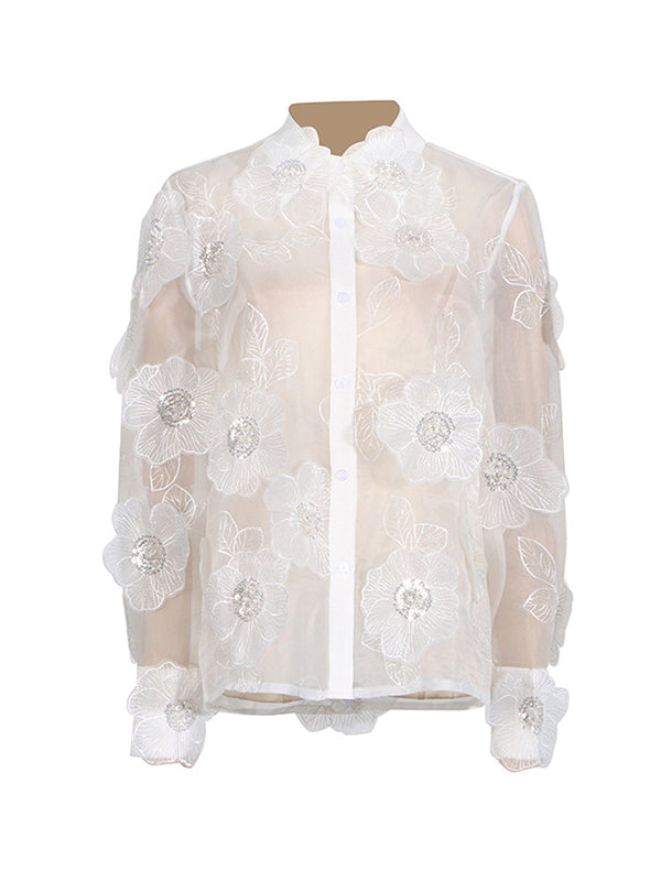 | Feature | Three-Dimensional Flower . Buttoned . Embroidered . See-through |
