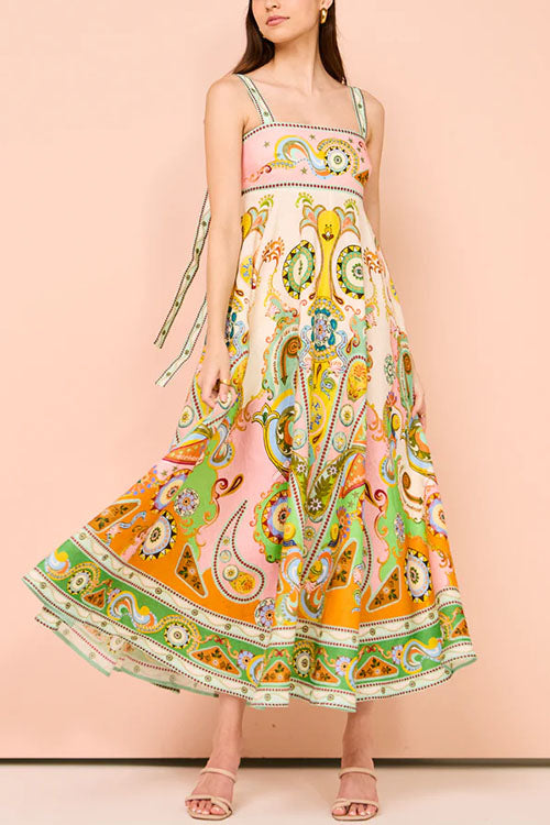 Create a showstopping look with the Meridress Bow Back High Waist Unique Print Swing Maxi Cami Dress! This dress features a flattering high waist and a unique print that will make you stand out in any crowd. The bow back adds a touch of femininity while the swing silhouette adds movement and flow to your outfit. Make a statement and feel confident in this one-of-a-kind dress!