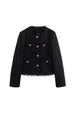 This button up tweed jacket offers a chic and versatile addition to any wardrobe. With a frayed hem for added edge. this jacket can be dressed up or down for any occasion. Its classic design and comfortable fit provide a timeless look while still remaining on-trend.