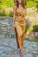 A unique look for any special occasion. the Meridress One Shoulder Side Split Waisted Satin Maxi Dress is an eye-catching design crafted from luxurious satin fabric. Featuring a side split waist and one shoulder detail. this stunning maxi dress will have you feeling your most glamorous self. Delight in the beauty of this unique piece and find the perfect occasion to show it off.