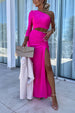 This Meridress one shoulder maxi dress is the perfect combination of elegance and edge. The unique cut out waist and high slit add a touch of daring to the classic one shoulder sleeveless design. With its sleek silhouette and eye-catching details. this dress is sure to turn heads and make a statement at any occasion.