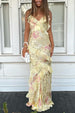 Experience effortless elegance and feminine charm with our Meridress Spaghetti Strap Backless Ruffle Trim Printed Maxi Dress. The delicate spaghetti straps. backless design. and elegant ruffle trim will elevate your style and make heads turn. Perfect for a summer event or a day at the beach. Feel confident and beautiful in this must-have dress!