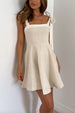 Dress to impress in the Meridress Square Collar Tie Shoulder A-line Mini Dress. The unique square collar adds a touch of elegance. while the tie shoulder detail adds a playful twist. The A-line silhouette flatters all body types. making this mini dress a perfect choice for any occasion.