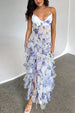 Embrace your feminine side in our Meridress V Neck Backless Cut Out Ruffle Trim Slit Floral Maxi Cami Dress! The delicate V-neckline and backless design highlight your curves. while the ruffle trim adds a touch of elegance. The side slit provides a chic. yet comfortable fit. Get ready to turn heads with this stunning floral dress!