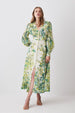 The Printed Lantern Sleeve V-Neck Buckle Waist Midi Dress is a breathtaking and enchanting garment that effortlessly combines elegance with a touch of whimsy. This dress features a stunning green print. adding vibrancy and a refreshing twist to the overall design. The v-neckline beautifully frames the decolletage. while the lantern sleeves create a romantic and graceful silhouette. The princess-style gown adds a regal and feminine touch. making you feel like royalty. The dress's flowing and ethereal nature creates a sense of movement and allure. Step into this pretty green printed gown dress and exude confidence and beauty with its blend of elegance and enchantment.