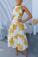 Be the center of attention in this vibrant midi dress. The sleeveless design. cut out details. and tie back add a touch of flirtatiousness to any occasion. With its eye-catching print. you'll command attention and feel confident in this unique and stylish dress.
