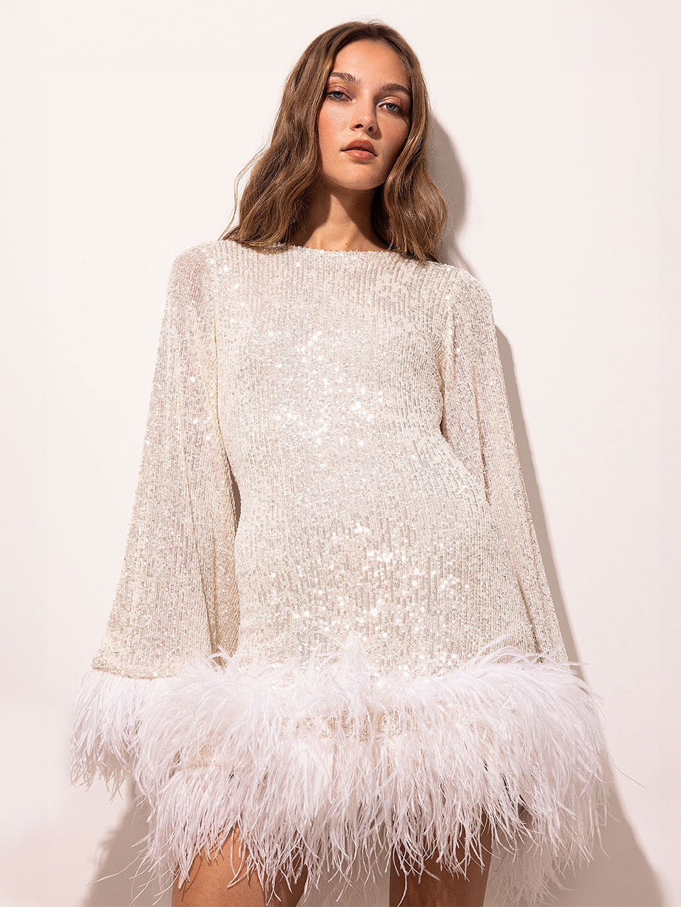 | Fabric | Polyester | Embellishment | Sequins. Feathers |